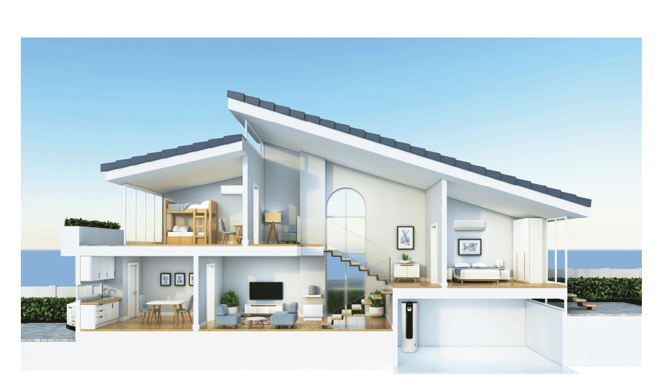 airHome Triple C splňuje všechny požadavky na domácí komfort: teplá užitková voda, vytápění a chlazení - vše napájeno jednou venkovní jednotkou.