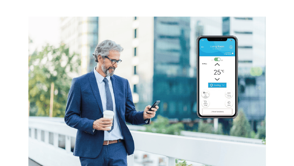 Díky aplikaci airCloud Go můžete upravit teplotu a rychlost proudění vzduchu podle svých preferencí. Zvolte si režim, který vám vyhovuje: vytápění, chlazení nebo automatický. Programovatelný termostat vám poskytne plnou kontrolu nad spotřebou energie a zároveň optimalizuje komfort po celý den.